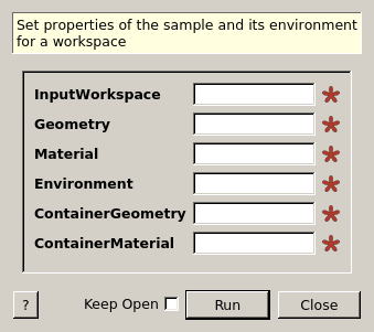 InputWorkspace InOut Workspace Mandatory A workspace whose sample properties will be updated