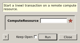 | ComputeResource | Input | string | Mandatory | The name of the remote computer where the new transaction will be created |