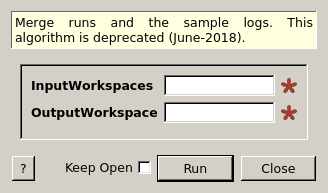 This algorithm is deprecated and will be removed in the next release. Please use MergeRuns v1 instead.