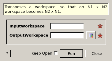 This algorithm transposes a workspace, so that an N1 x N2 workspace becomes N2 x N1.
