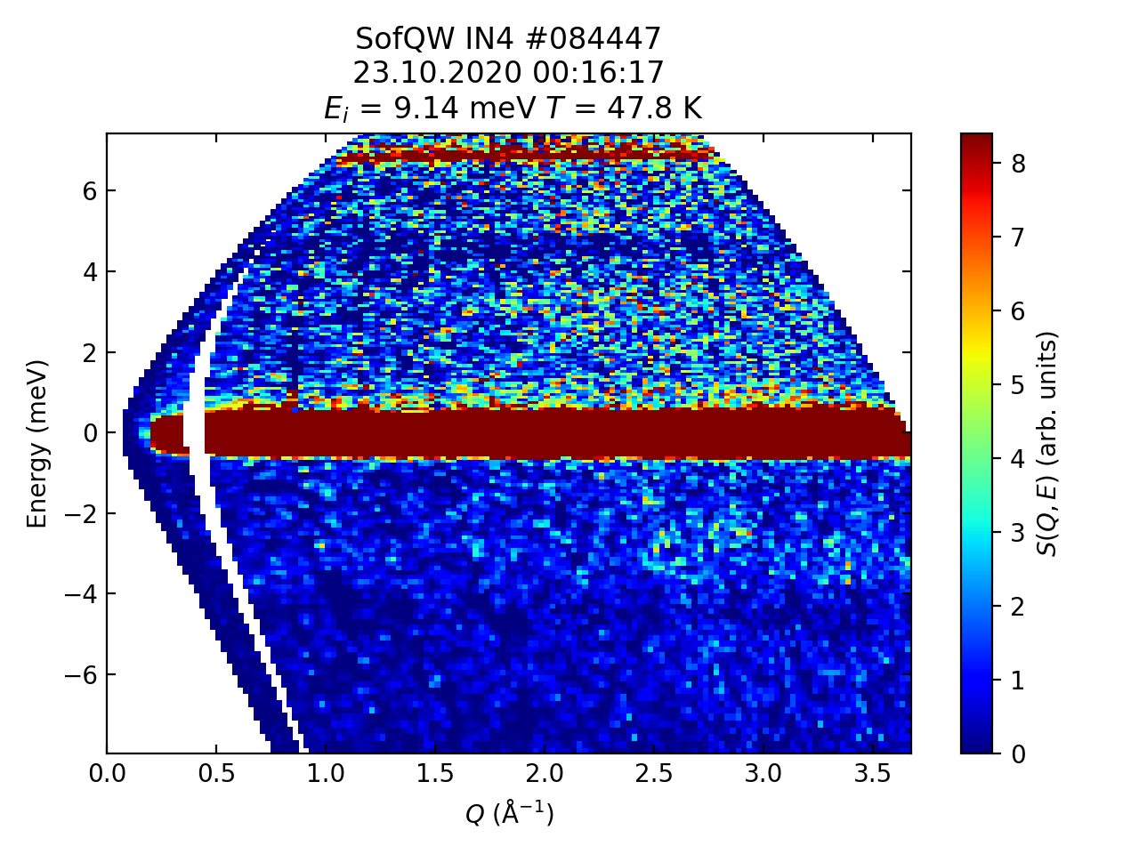 directtools.plotSofQW(workspace, QMin=0.0, QMax=None, EMin=None, EMax=None, VMin=0.0, VMax=None, colormap='jet', colorscale='linear')¶Plot a 2D