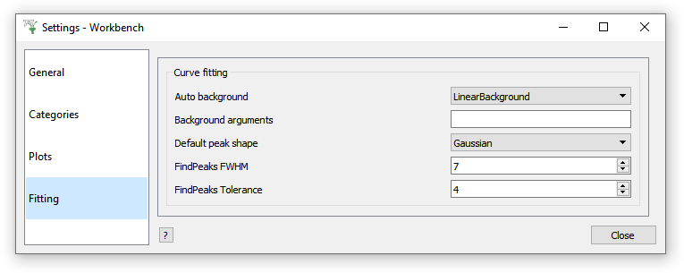 There are even a few Fitting options you can set, such as your Default peak / background function.