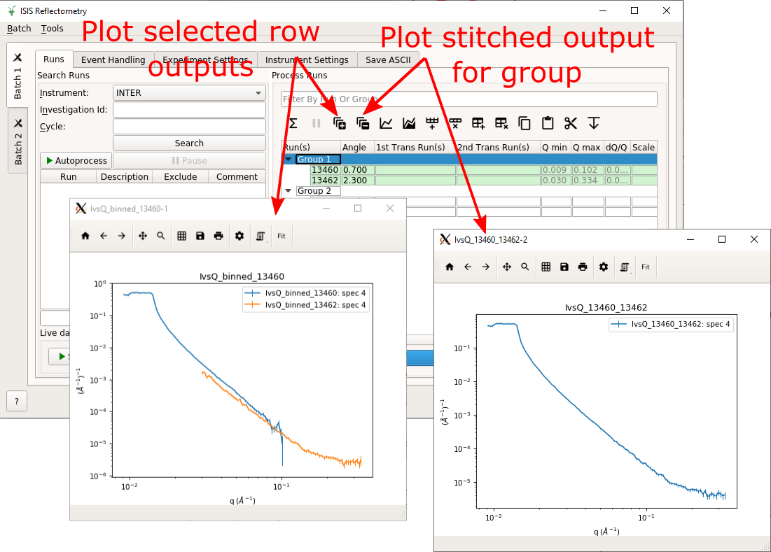(i.e. IvsQ_binned_13460 and IvsQ_binned_13462) for the selected row(s),