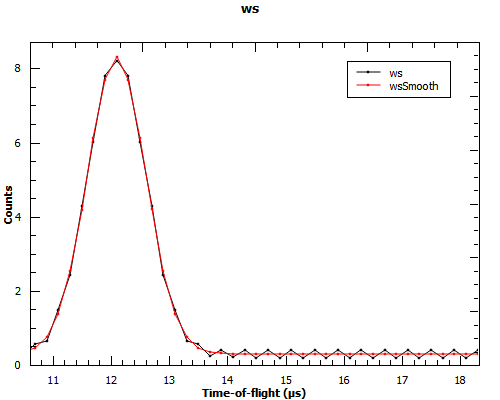 smooth = FFTSmooth( ws, Filter='Butterworth', Params='5,2', AllSpectra=True )