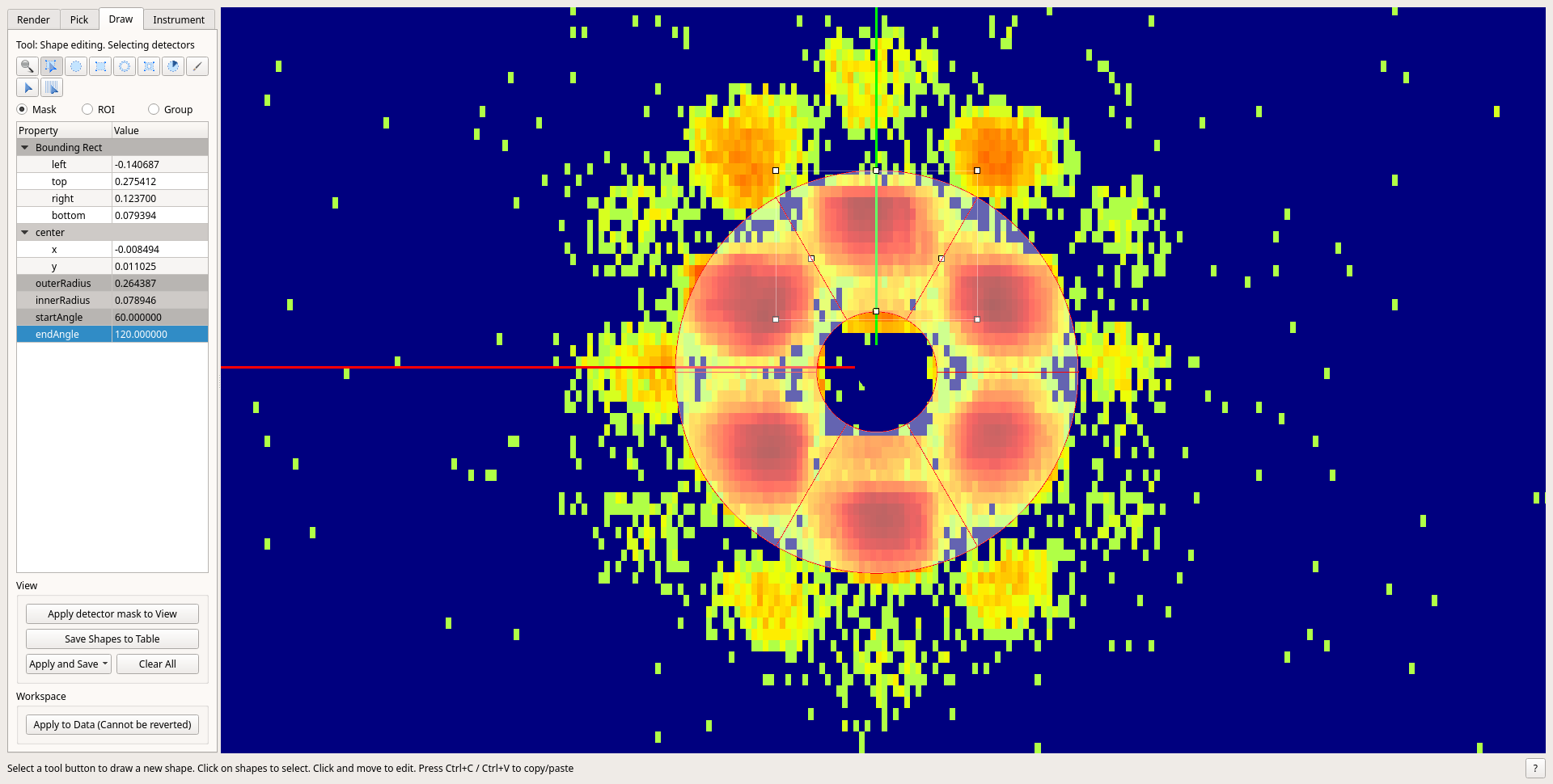 It is also possible to use the instrument viewer to draw the shape of the angular sector. Only sector shapes are currently supported,
