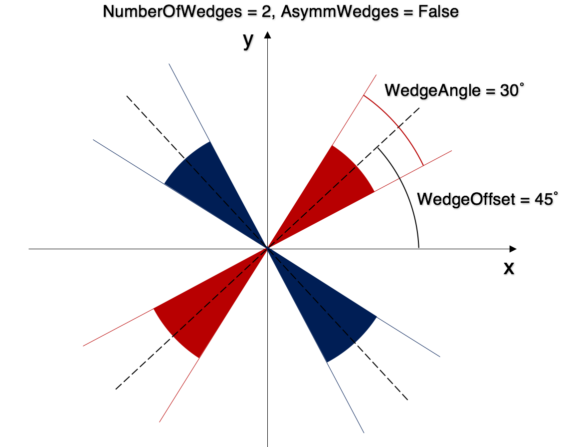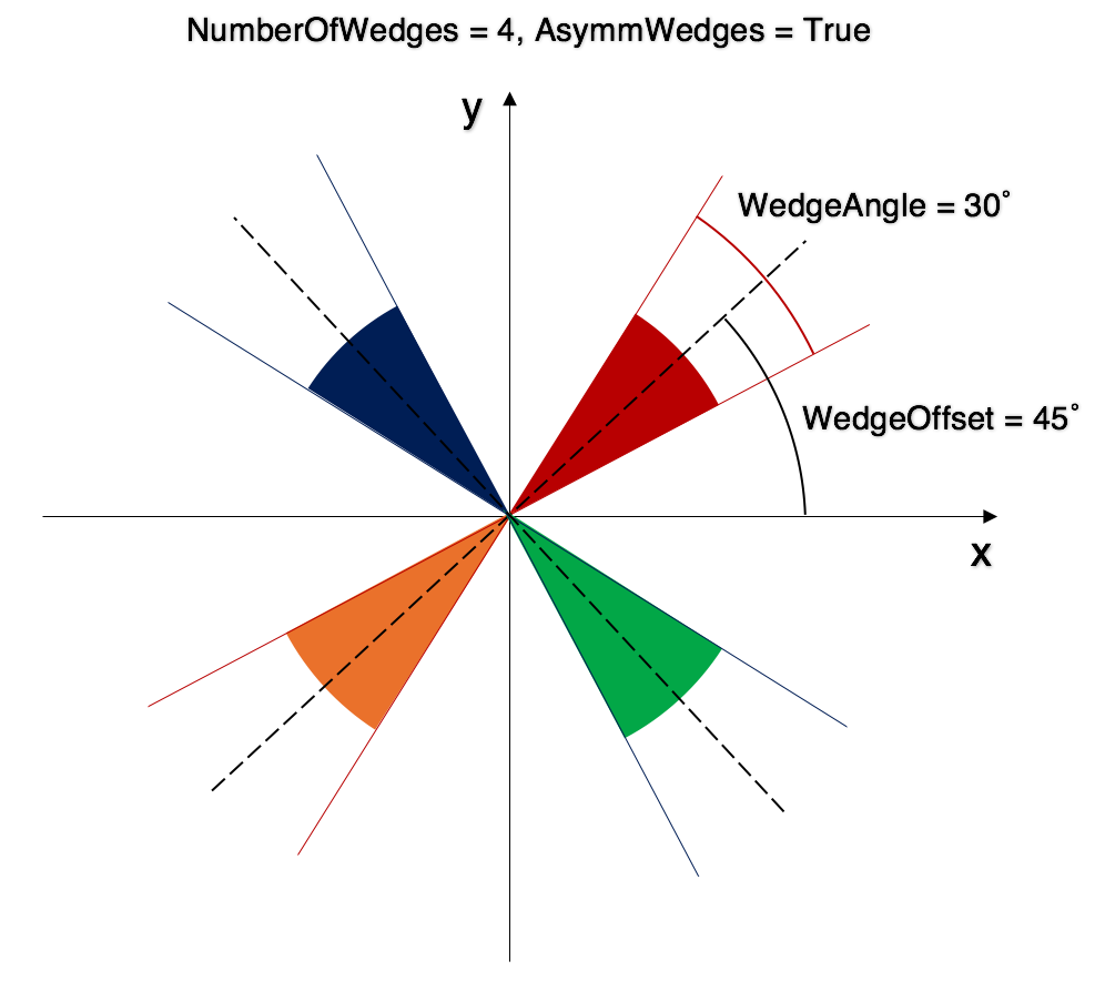Wedges are defined by the NumberOfWedges, WedgeAngle and WedgeOffset parameters.