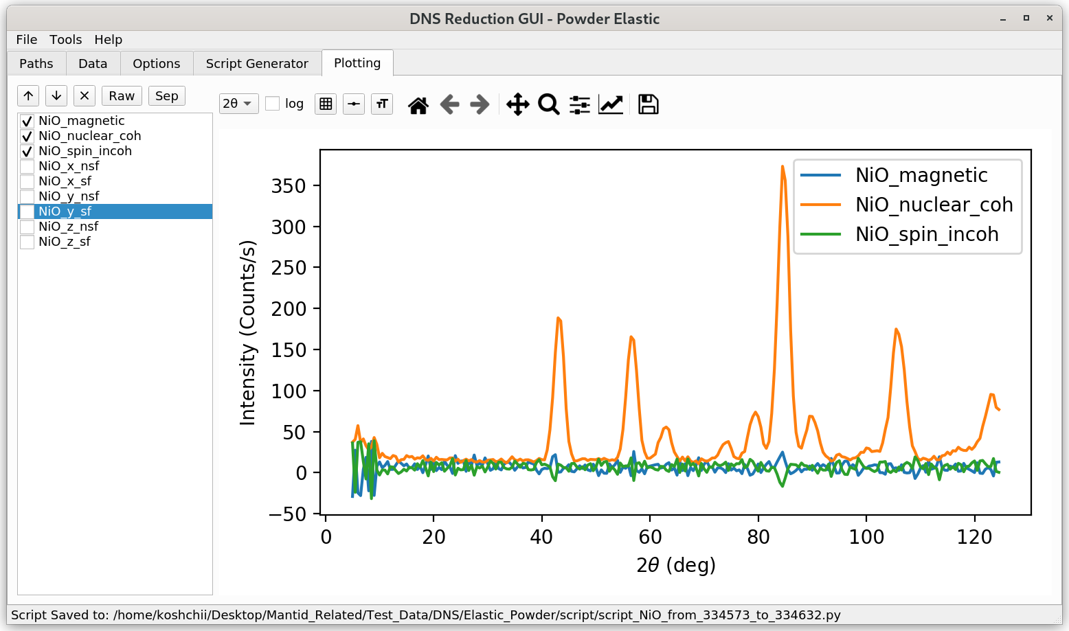 The Plotting tab offers basic plotting functionality for reduced data sets.