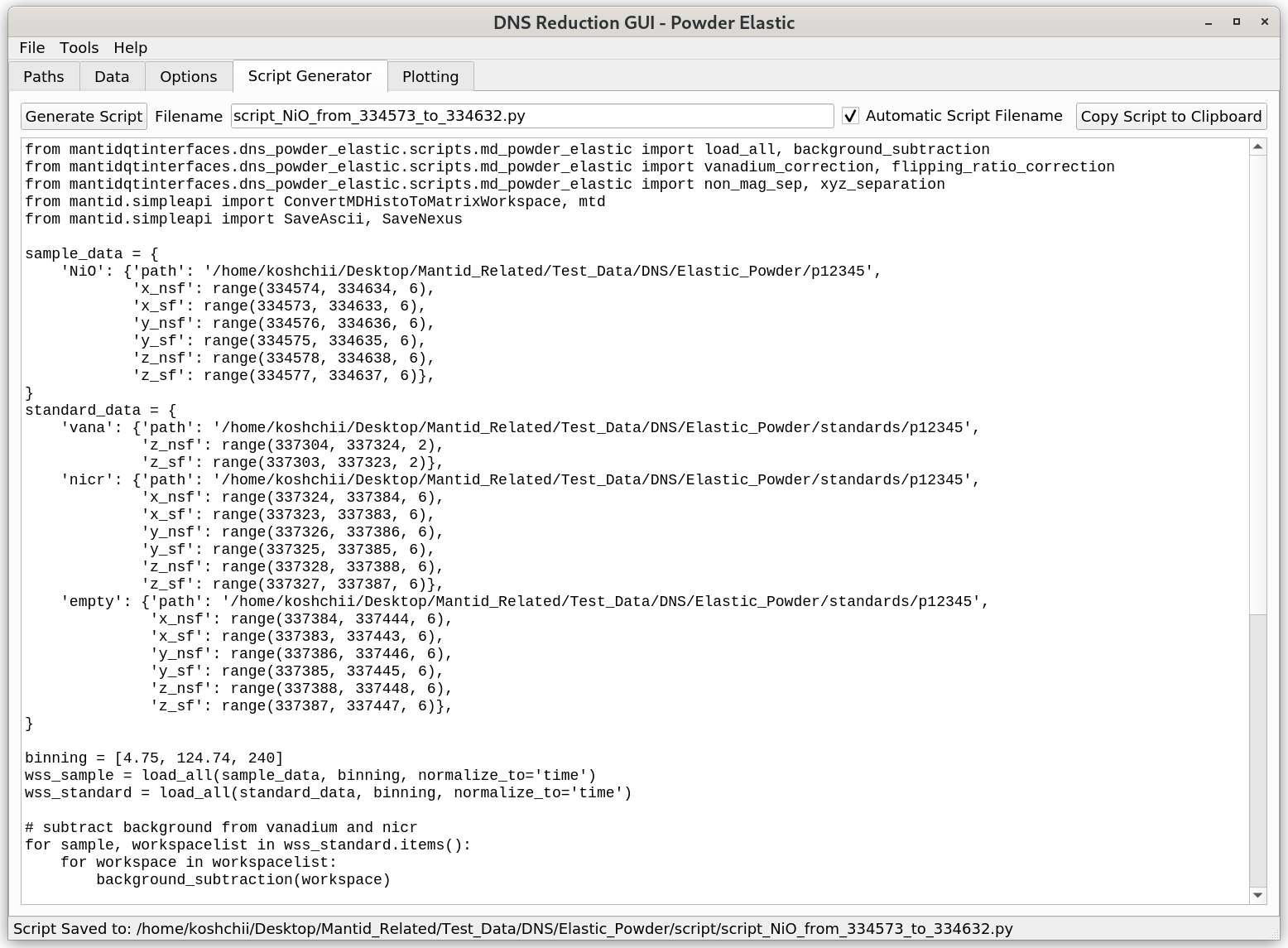 The functionality of the “Script Generator” tab of this operational mode is identical to that of Script Generator of the DNS Powder TOF.