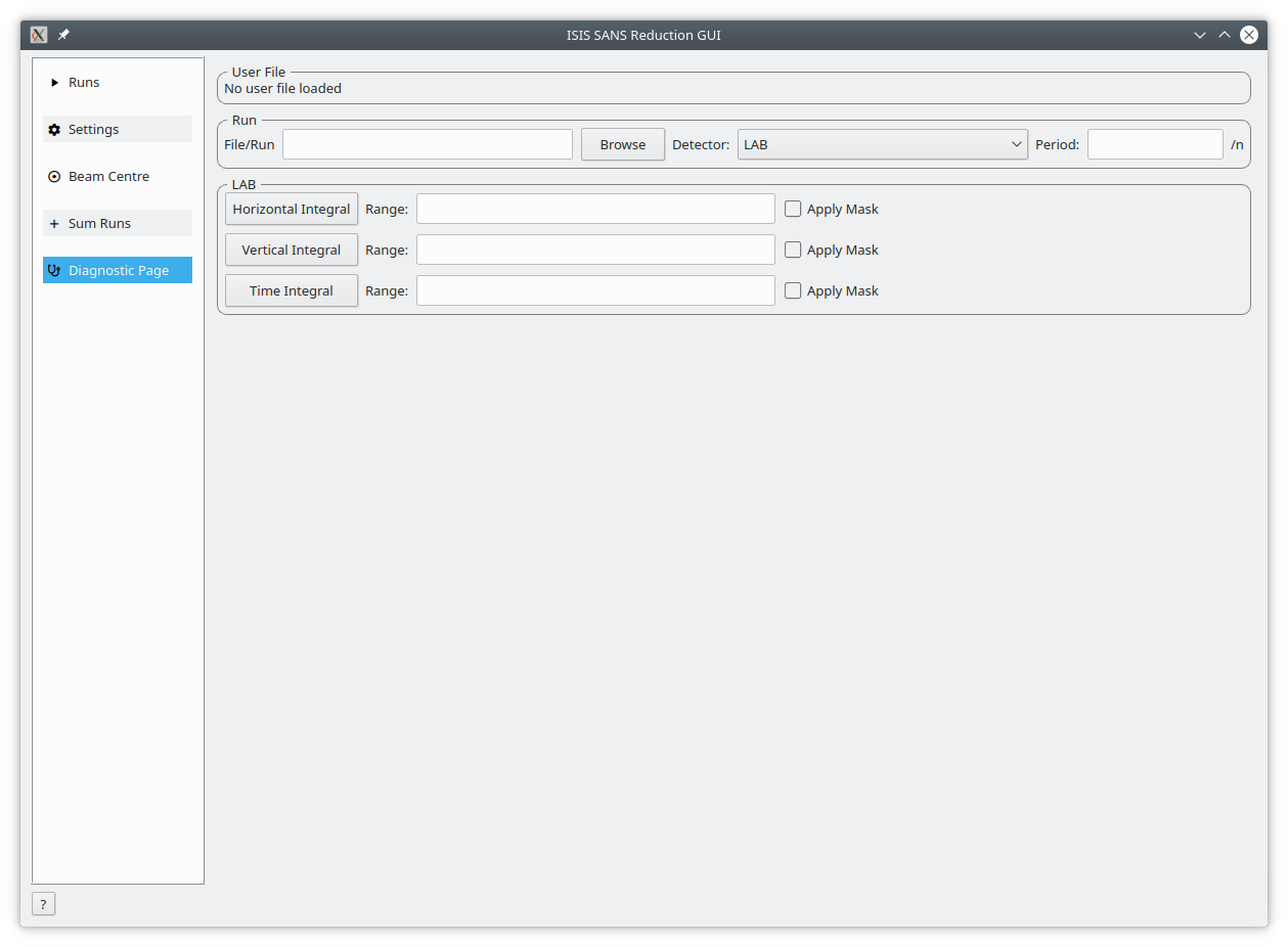 These three buttons start an integration on the selected workspace. The horizontal integral sums up each row, the vertical integral each column and the time integral sums across time bins. |