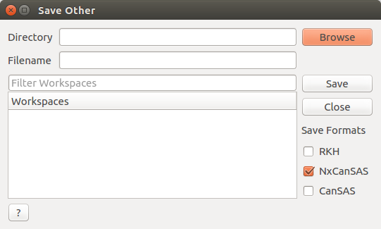 This interface is intended to allow workspaces in the ADS to be easily saved in one of three formats RKH, NxCanSAS and CanSAS.