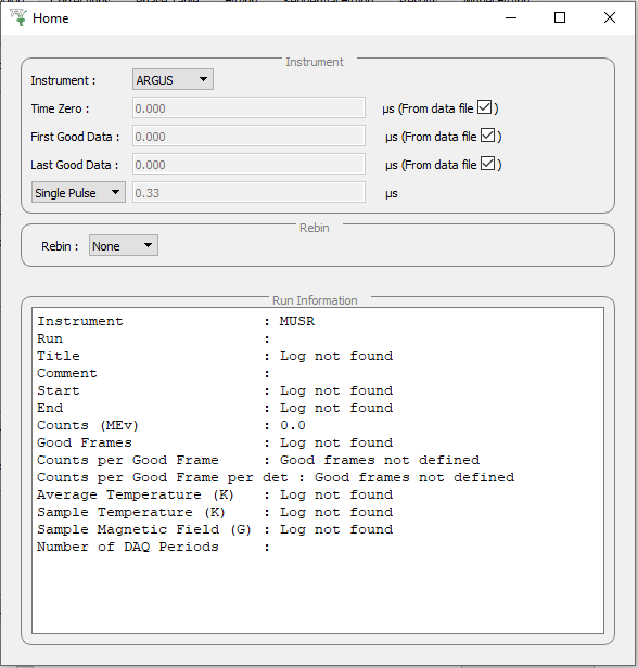 Instrument This selects the instrument used by the GUI.