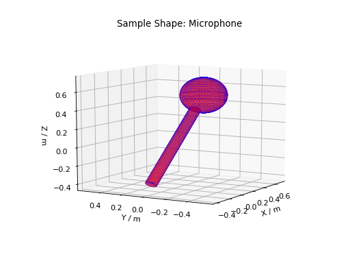 Sample shapes which are CSGObjects can now be plotted. Shapes can also be merged, such as a sphere with a cylindrical hole. For more details see 3D Mesh Plots for Sample Shapes.