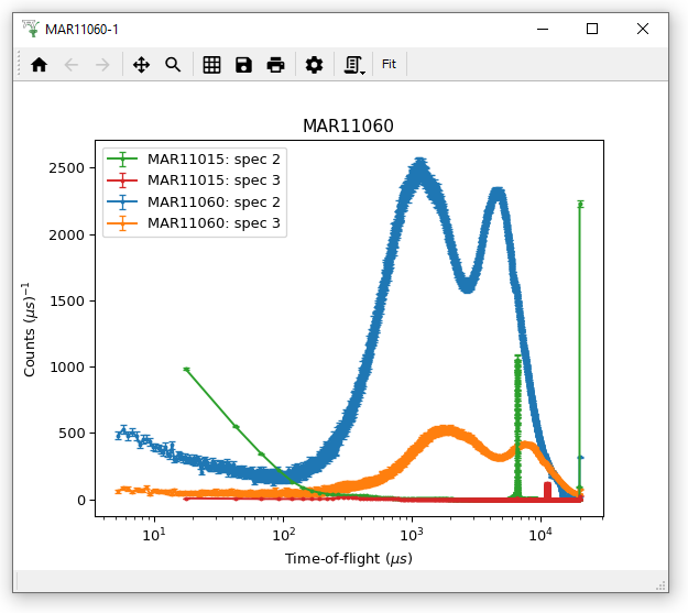 Using the workspaces MAR11015 and MAR11060 try to reproduce the plot below. Note it contains spectra 2 and 3 of both Workspaces