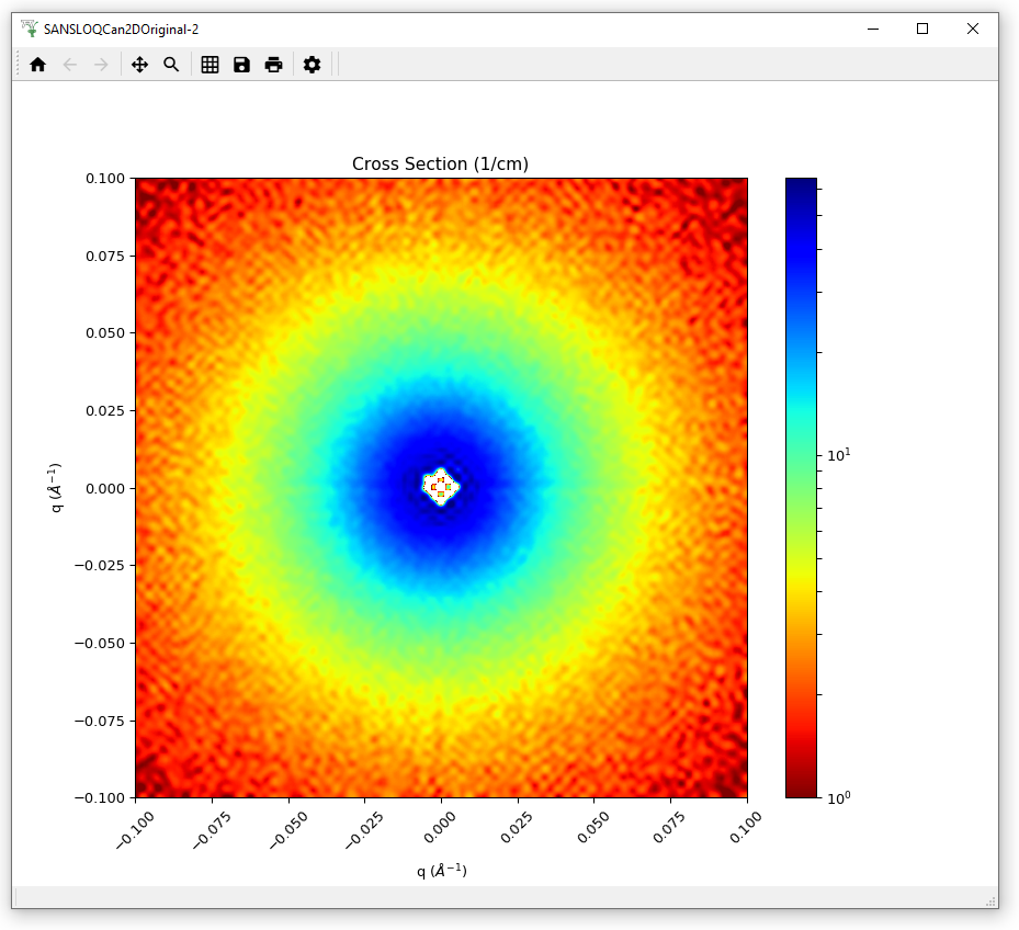 Load the SANSLOQCan2D.nxs data. This is the output of a 2D SANS data reduction. Although a Workspace2D is mainly designed to store spectra, this is just the default, and in this data the loaded axes are momentum transfer Qx and the scattering cross section, and the ‘spectrum’ axis is momentum transfer Qy.