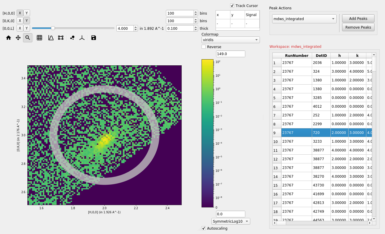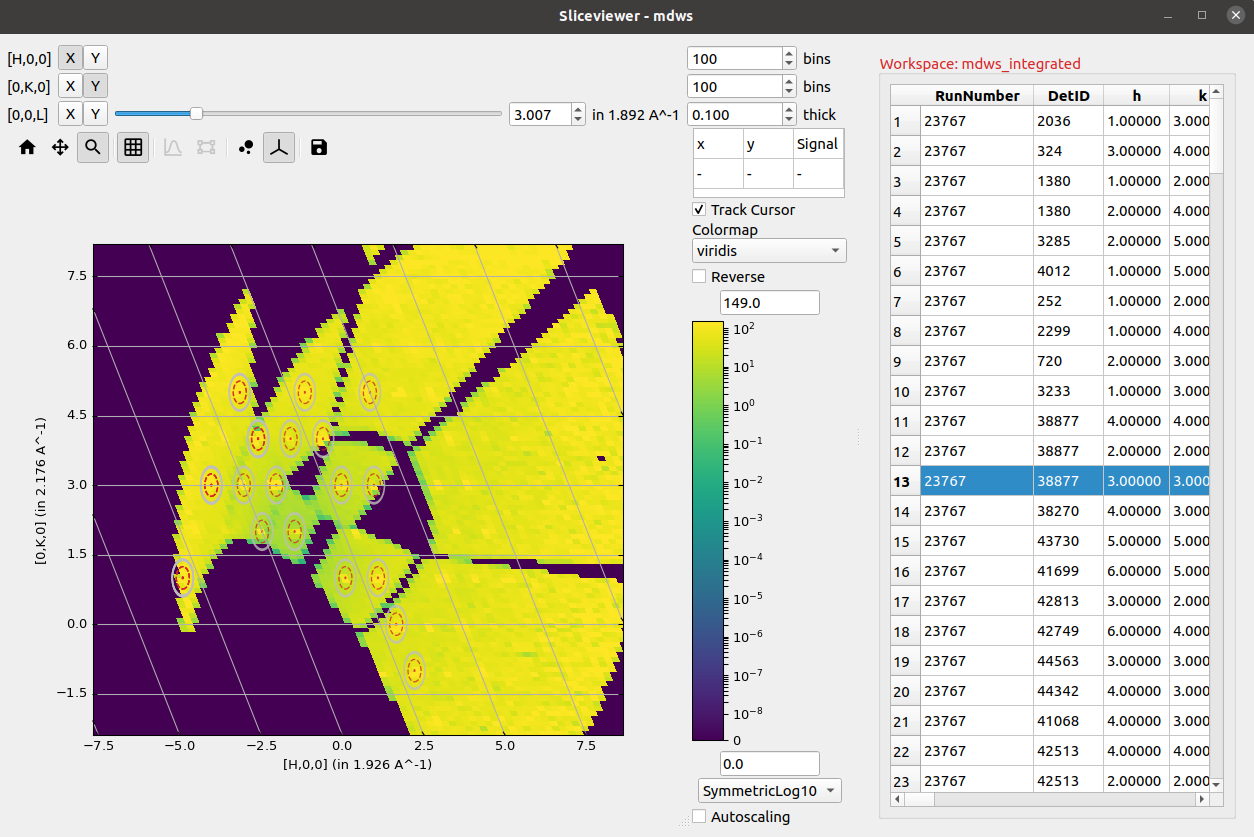 The Sliceviewer is a viewer supporting MDEventWorkspace, MDHistoWorkspace & Matrix Workspace. For multi-dimensional workspaces, you can view both MDWorkspaces and MDHistoWorkspaces, a 2D “slice” of the higher dimensional space is shown, whereas a MarixWorkspace simply shows the 2 defined dimensions.