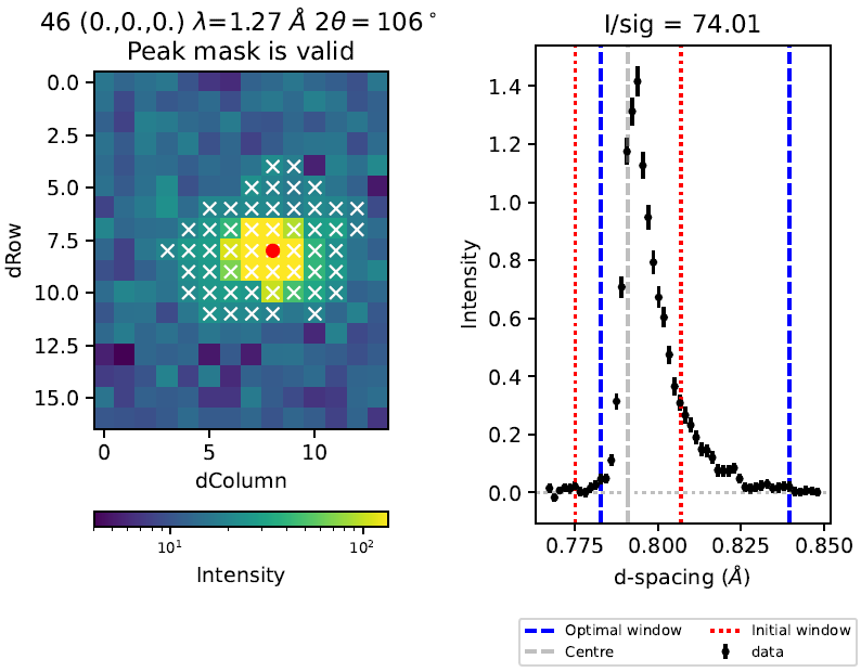 OptimiseXWindowSizeto fix TOF (or d-spacing) window extent below a threshold \(intensity/sigma\) (ThresholdIoverSigma) in IntegratePeaksSkew.Improved formatting of plots in pdf output of IntegratePeaksSkew.